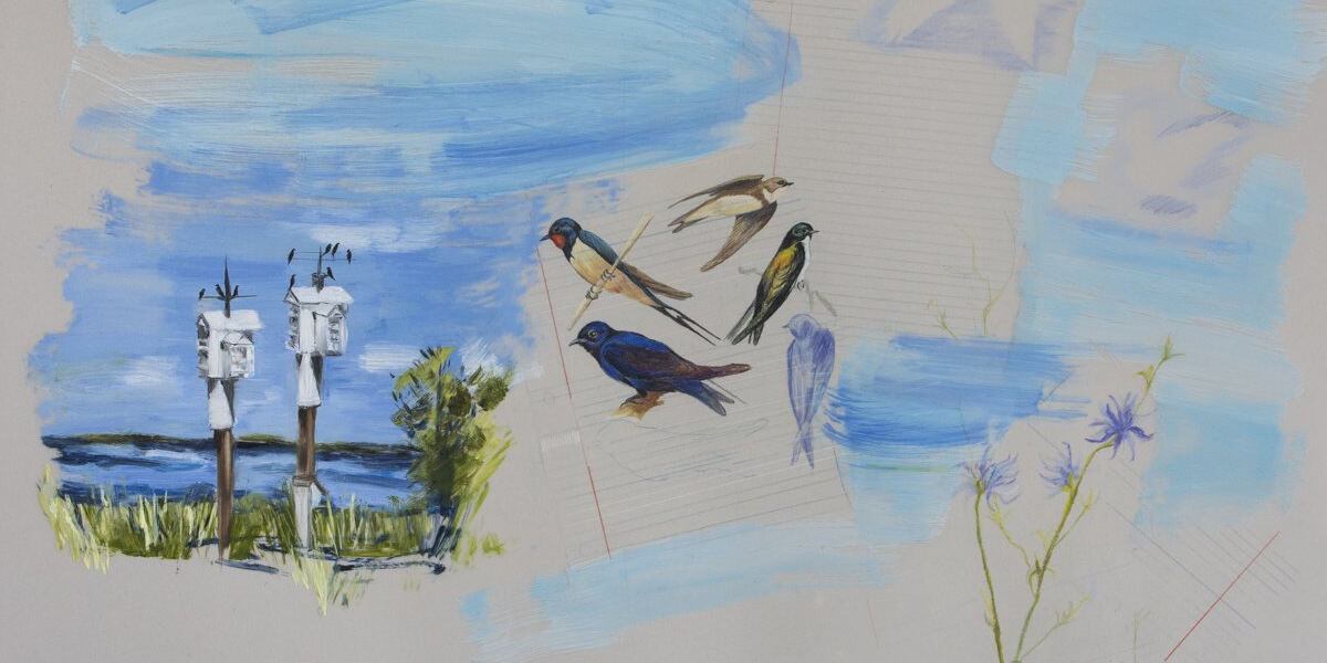 Field Notes explores the beautiful environment of our wonderful Amherst Island, where our family spends summers. The work combines observational drawings of natural specimens with painterly rural and lakeside landscapes in Kathleen’s own unique style of scientific field notes. Please consider treating yourself to a trip to Prince Edward County this summer, and visit Kathleen’s exhibition.