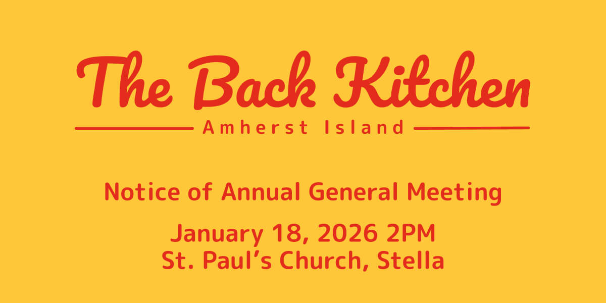 The Annual General Meeting of the Back Kitchen is your chance to catch up on the business of Amherst Island's community run not -for-profit restaurant. Join us for our year in review and to hear what we have cooking for 2026.